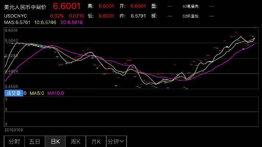 人民币兑美元中间价调降至2011年初以来最低,跌破6.6整数关卡。
