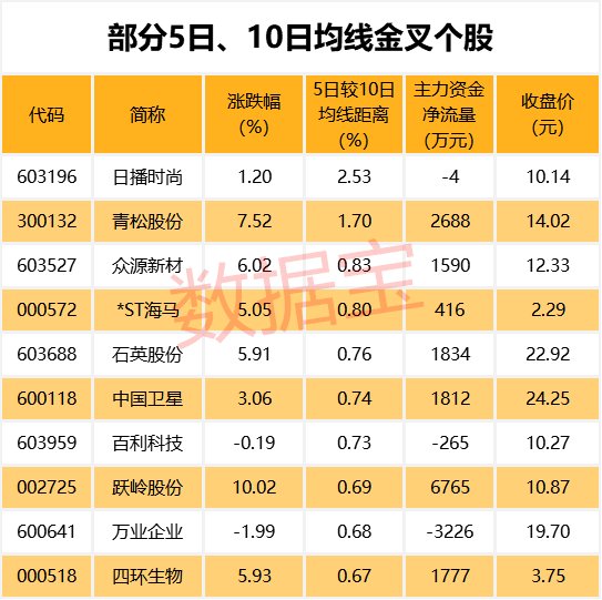 证券时报•数据宝统计,截至1月17日收盘,有47只A股的5日均线主动上穿10日均线,其中日播时尚、青松股份、众源新材等个股的5日均线较10日均线距离最大,分别达2.53%、1.70%、0.83%。