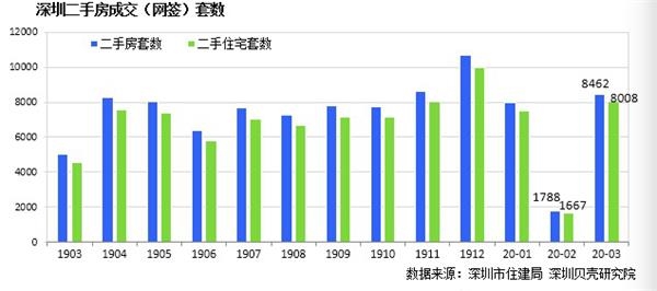 事实上,3月深圳二手房成交量已恢复正常。深圳市住建局数据显示,3月二手房全市网签8462套,二手住宅8008套,较2月份大幅回升,不少前几月签约的房源延后至3月份办理过户等手续。